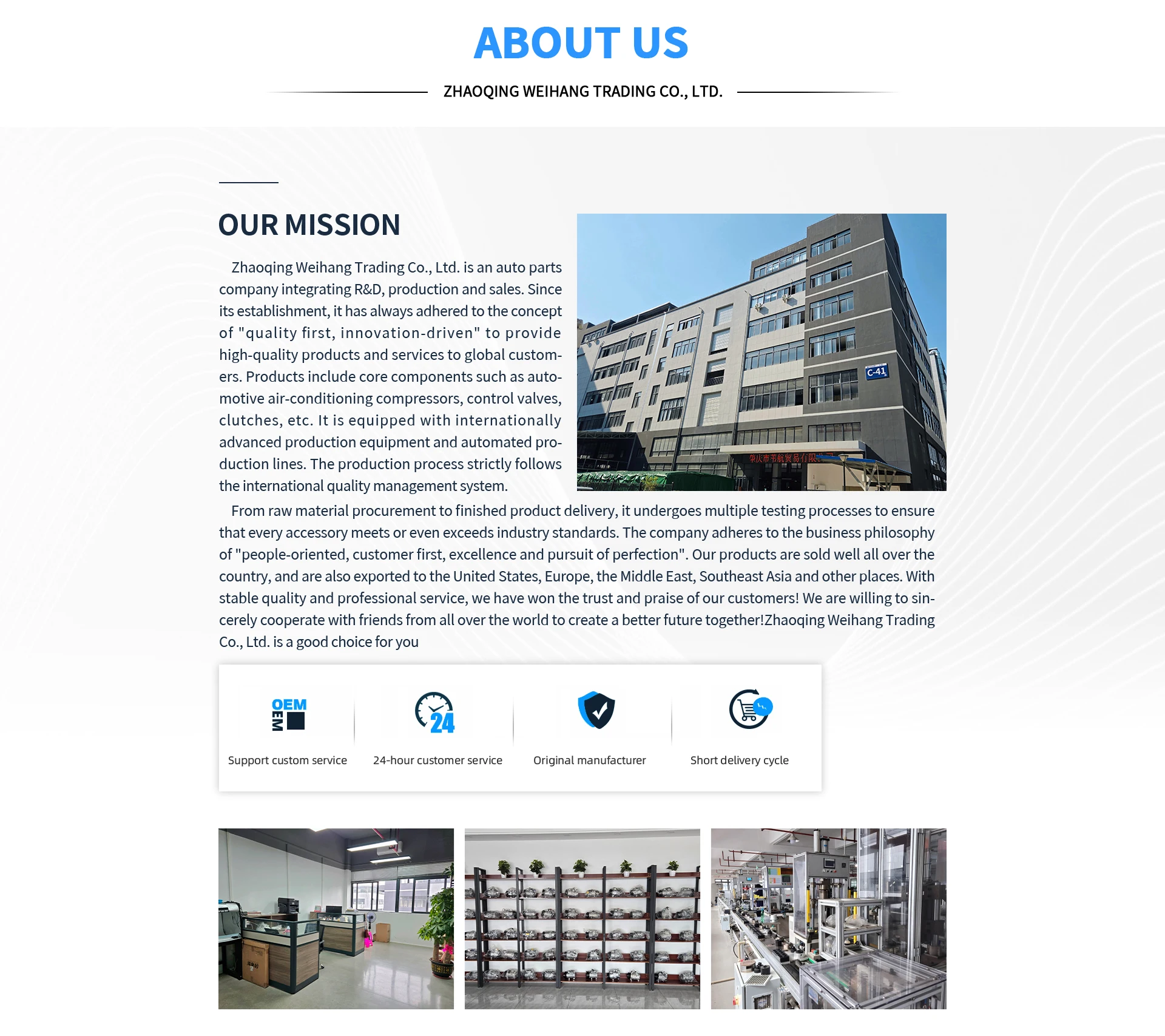Productos principales:Compresor, válvula de control, embrague, rodamientos, Dinamo